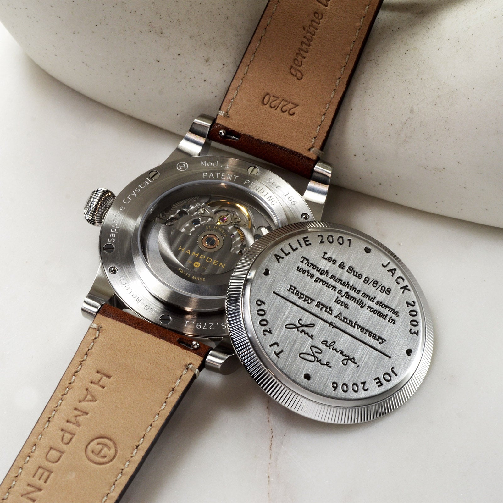 Make your anniversary unforgettable with a Hampden watch, where luxury meets personal meaning in every detail.