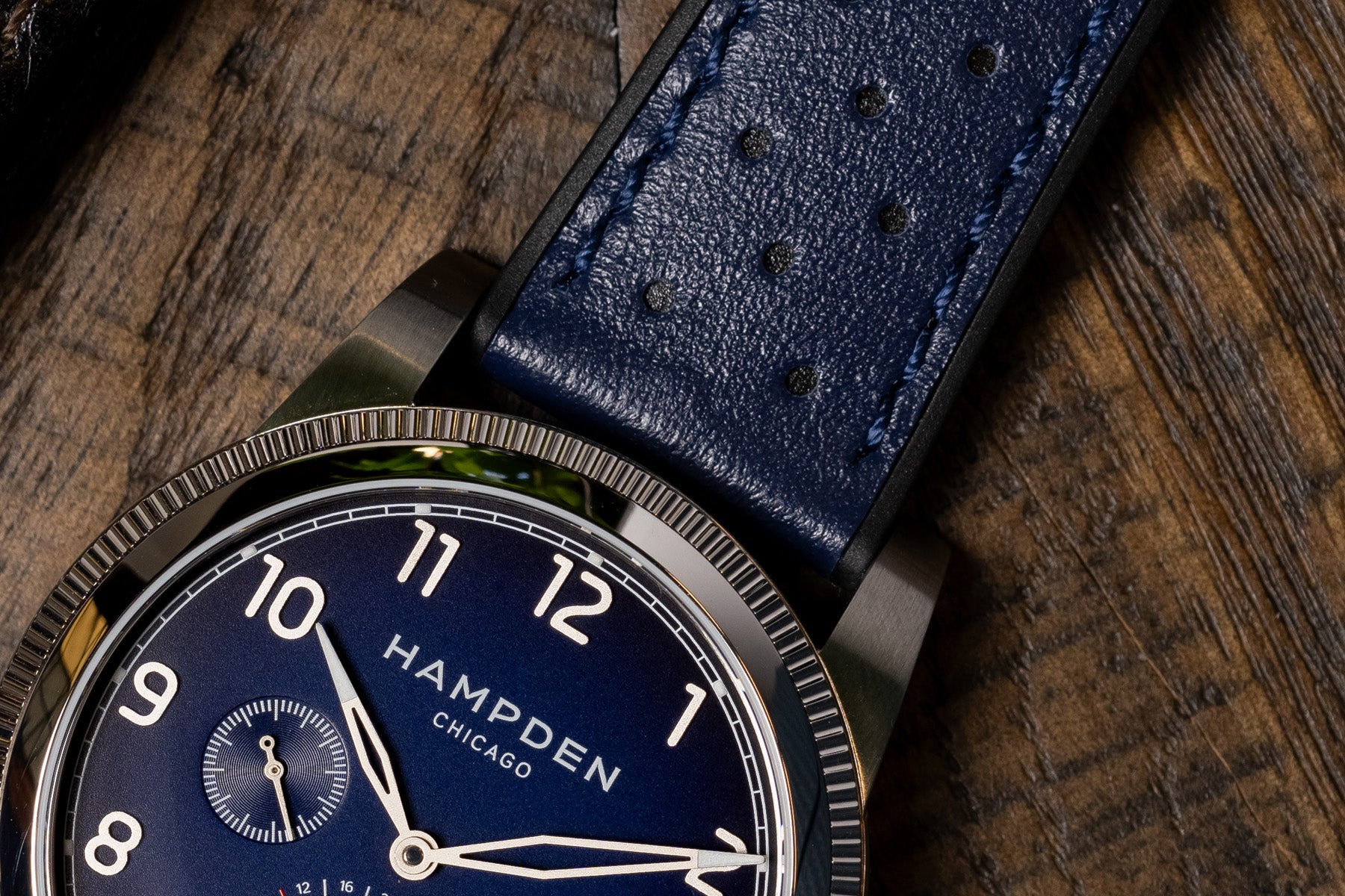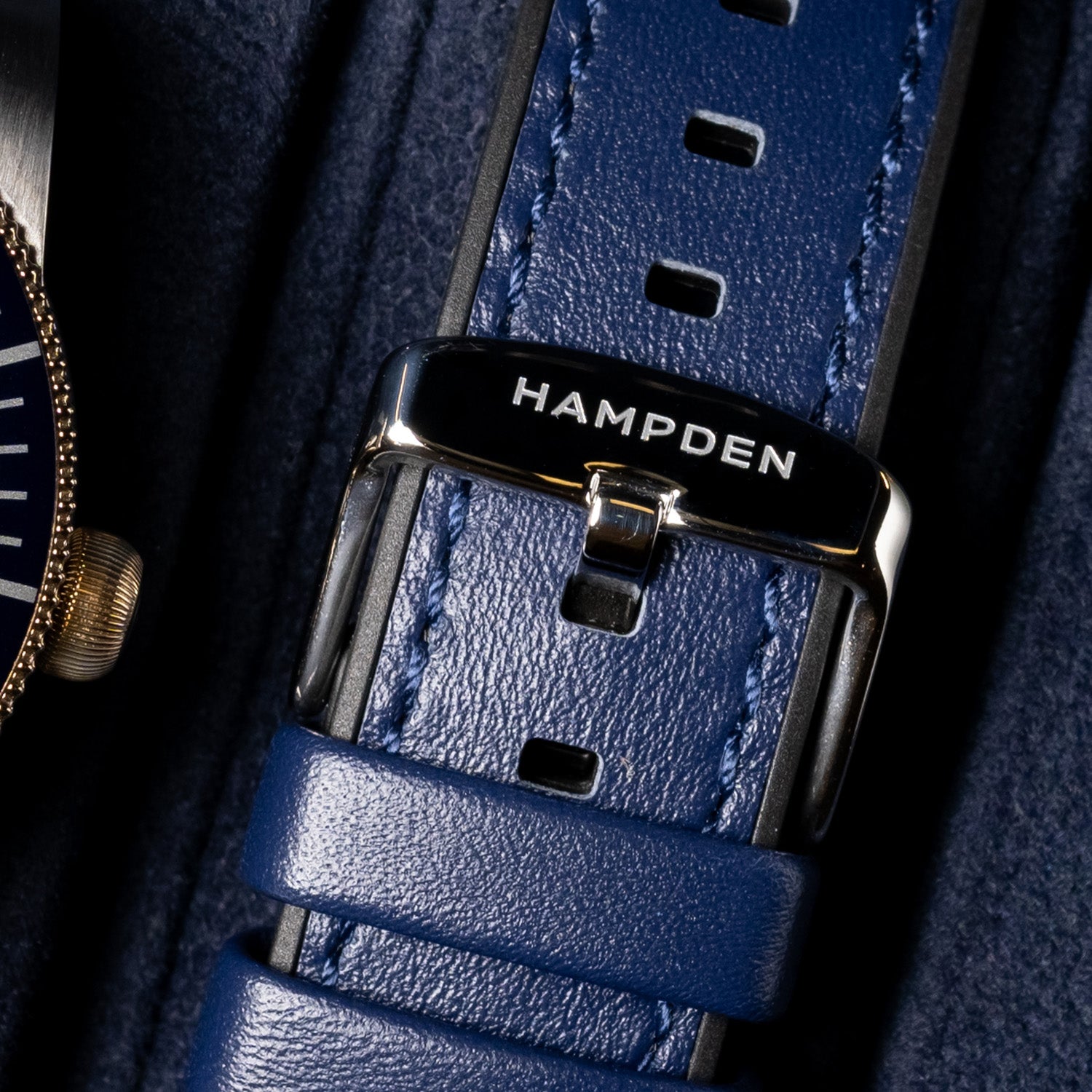 Crafted from genuine Italian leather with a rubber lining, this blue strap combines classic style with modern durability. The leather ages beautifully, while the rubber backing offers all-day comfort and moisture resistance. This strap is built for everyday wear - refined, rugged, and ready to go. Also available in red, brown, and grey.