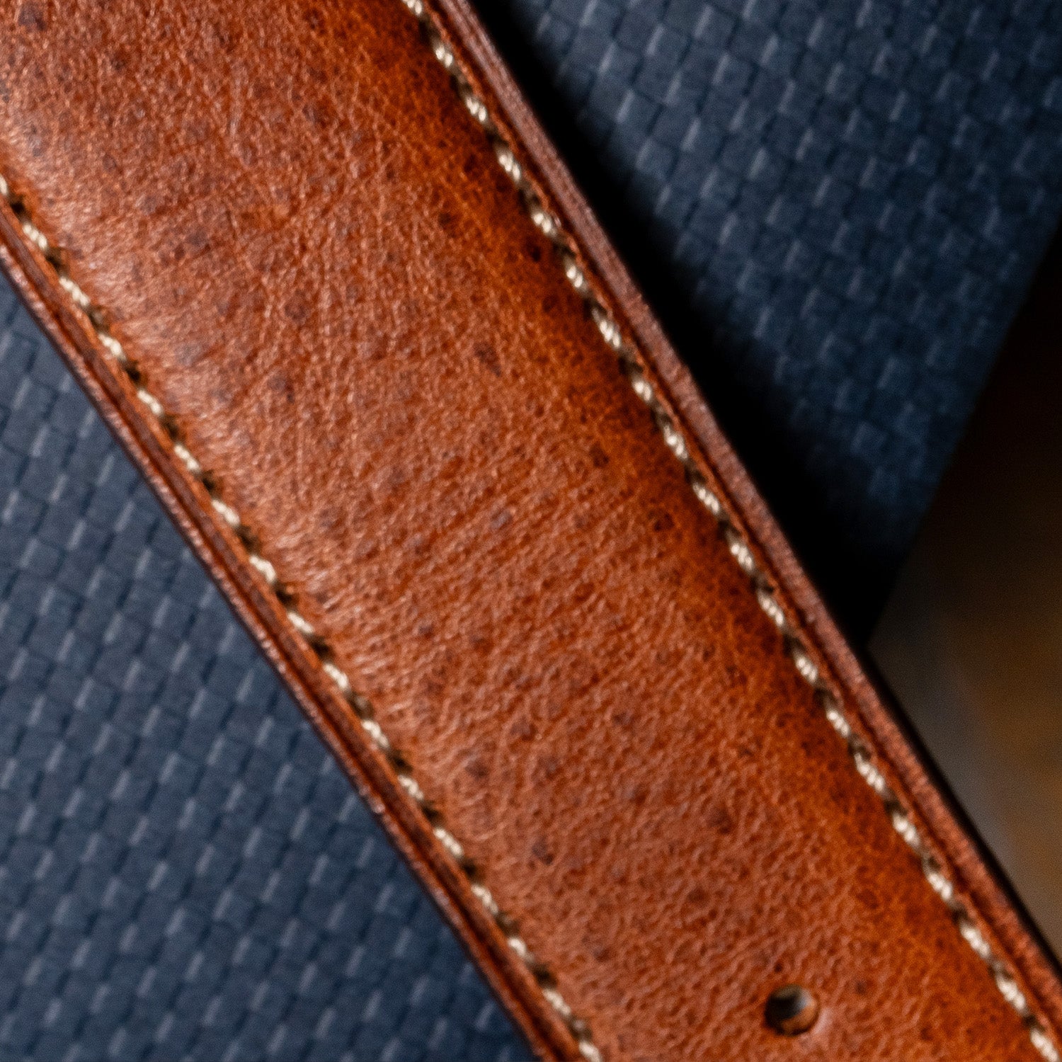Our genuine Italian leather strap in brown is crafted for comfort and character. Designed to complement the timeless aesthetic of your Hampden watch, it features hand-finished edges, a soft underside for all-day wear, and a stainless steel buckle for understated polish. Quick-release spring bars make it easy to swap styles in seconds (no tools required). Brown is warm and versatile. It brings a rugged, lived-in feel that ages beautifully with each wear. Also available in black and honey genuine Italian leather.