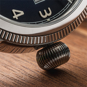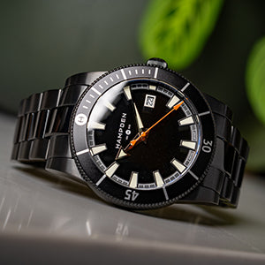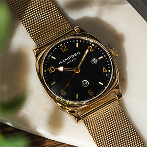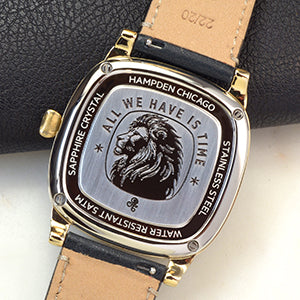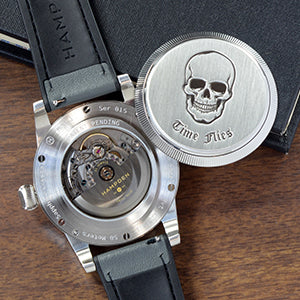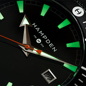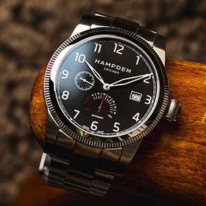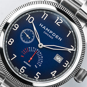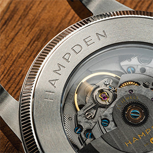 - Crown: Oversized stainless steel onion crown with embossed Hampden logo.