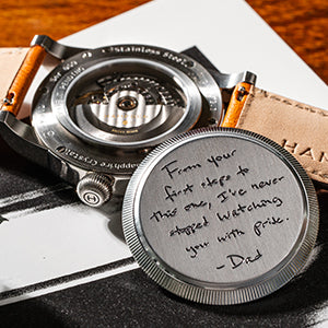 We've invented and patented a removable Casecap® which transforms the full caseback into space for storytelling. Whether it’s a hand-drawn sketch, a meaningful date, a symbol of identity, or a note from someone you love — this is personalization without limits.