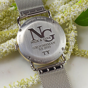 Show your appreciation to esteemed employees, valued clients, bridal parties or more by presenting them with a one-of-kind customized watch. Volume discounts are available. Our team is happy to discuss pricing and next steps. For more details, please contact us.