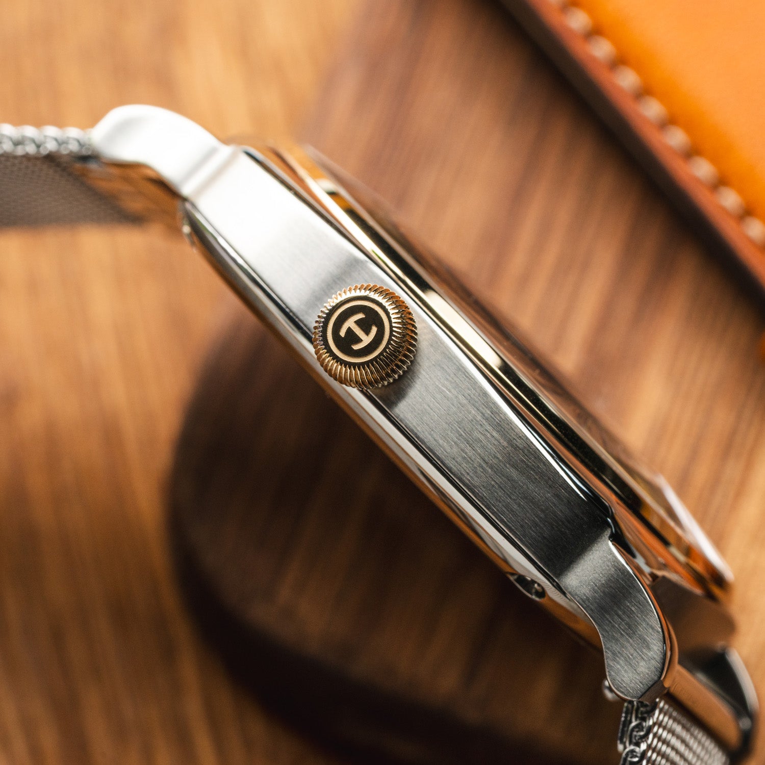 We dare you to find a watch that transitions from work to play as seamlessly as The Model 2. With an effortless marriage of sport and style, you can keep time on any adventure. Your Model 2 changes with your mood, and lets you quickly swap between a Milanese mesh metal band and beautiful Italian leather strap, both included. This Hampden model offers our widest selection of case and dial colors so choose the one that suits you best.
